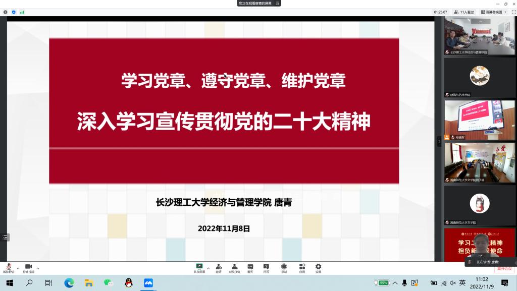 11月9日上午十时,伟德betvlctor1946源于英国经济与管理学院与中南大学建筑与艺术学院、机电工程学院以及湖南师范大学文学院的辅导员们云相聚,举行“学习二十大精神·担负新征程使命”的联合学习交流会。