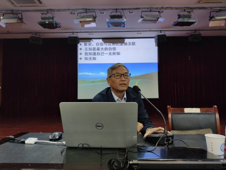 成松柳从文化认知的角度出发,以三个问题引入宣讲:没有清楚的文化认知,文化自信,自信在何处?没有清醒的文化认知,中华文化和世界的对话,在什么样的平台展开?面对不同文明的冲突,我们怎样坚持和展开平等的文化对话?围绕文化定义、文化认知、文化自信与文化繁荣三个方面展开引导大家进行深入的思考。成松柳指出文化的中心位置是人,学习是儒家经典中最温暖的字眼,研究和建设文化必须关注人类生活。文化自信应该体现在五个方面:一要意识到文化传承文化传承的重要性;二要努力创造开放对话平台和环境;三要勇于在不同文化、信仰和学说之间,相互讨论与切磋;四要对文化资源进行创意提升,一定要树立明确的保护意识,强调保护是第一位的;五要注意用文化引领产业的发展,不能让文化仅仅成为科技与经济的附庸。他告诫大家要认识中华文化,必须要认识中华文化在世界体系中的位置、要认识中华文化对国家发展的影响。