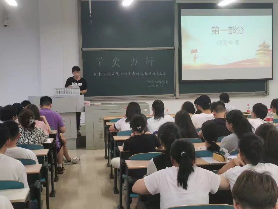 6月23日晚,水利学院在工三A216举行“学史力行”系列活动之水利水电工程专业考研就业经验分享交流会。由毕业生党员杨雪、汪华晨、谭威、陈冯洲、杨博威5位同学作主题发言分享,2018级、2019级水电专业学生参加。