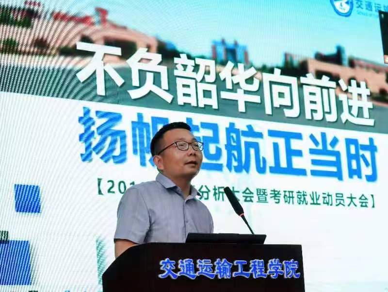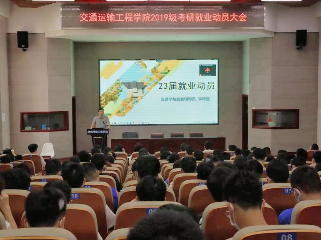 8月30日下午,交通运输工程学院在工科二号楼B301召开“不负韶华向前进,扬帆起航正当时”主题考研就业动员大会。学院党委副书记涂道勇、就业专干李特超出席会议,交通学院2019级全体学生参加。本次会议由2019级辅导员彭笠主持。