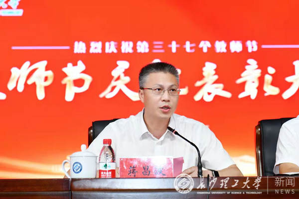 付宏渊代表学校党委向全体教职员工致以节日的问候和衷心的感谢,向受到表彰的先进集体和优秀教师表示祝贺,向为学校发展作出突出贡献的广大离退休老教师、老同志致以崇高的敬意,向153名新加入长理的教职员工表示热烈的欢迎,向为学校发展作出重要贡献后光荣退休的90名教职工致以真挚的谢意!