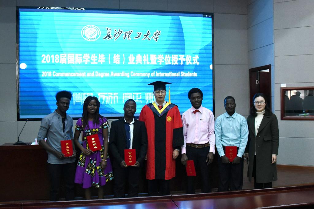 1月10日下午,伟德2018届国际学生毕(结)业典礼暨学位授予仪式在工二B301举行。副校长蒋昌波,校党委委员、国际学院党委书记付嫦娥、土木与建筑学院副院长王桂尧、国际学院党委副书记兼副院长吴振华、副院长秦卫星,11名2018届国际学生毕业生及结业生以及国际学院全体老师和留学生参加了典礼。典礼由国际学院院长陈瑜主持。
