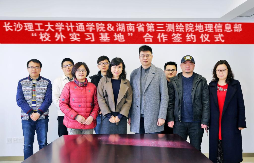 3月10日,计通学院与湖南省第三测绘院地理信息部举行毕业生就业实习基地签约仪式,副院长姜腊林、党委副书记陈华,湖南省第三测绘院地理信息部主任艾驰出席签约会,学院师生代表及地理信息部相关工作人员参加。签约仪式在省第三测绘院的会议室举行。