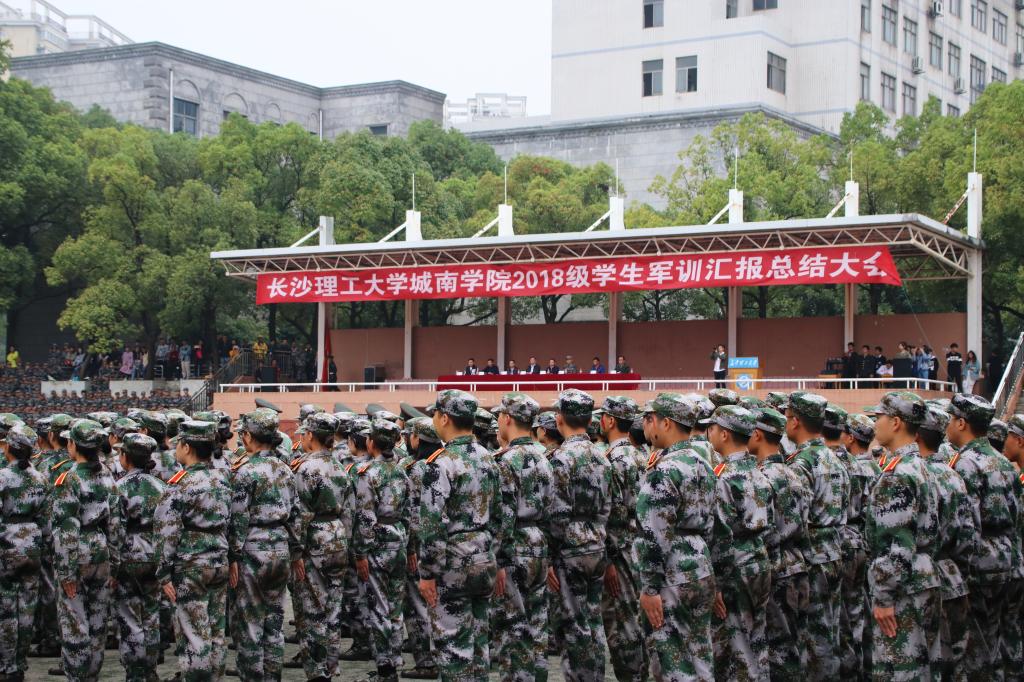 10月19日下午,在金盆岭校区田径场上,五星红旗伴随着庄严的国歌声冉冉升起,城南学院在此举行2018级学生军训汇报总结大会。副校长谈传生,学工部副部长霍向阳以及城南学院全体院领导出席,大会由城南学院党委副书记王明彦主持。