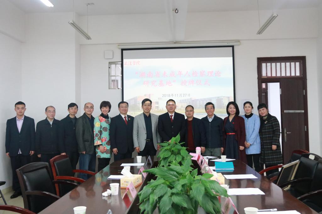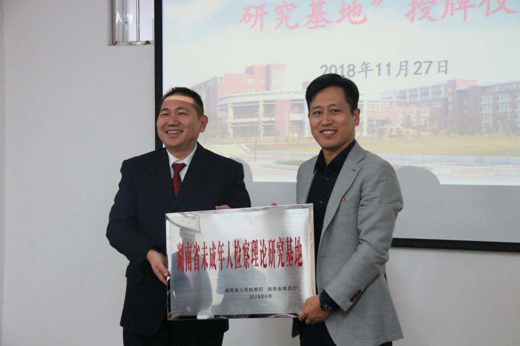 11月27日下午,湖南省人民检察院副检察长印仕柏、公诉一处副处长梁驭骁莅临伟德betvlctor1946源于英国文法学院,代表湖南省人民检察院为“湖南省未成年人检察理论研究基地”授牌。副校长刘扬、人文社科处处长卿定文、文法学院院长王新生、文法学院党委书记孔伟红等领导以及理论研究基地的部分老师出席了活动。