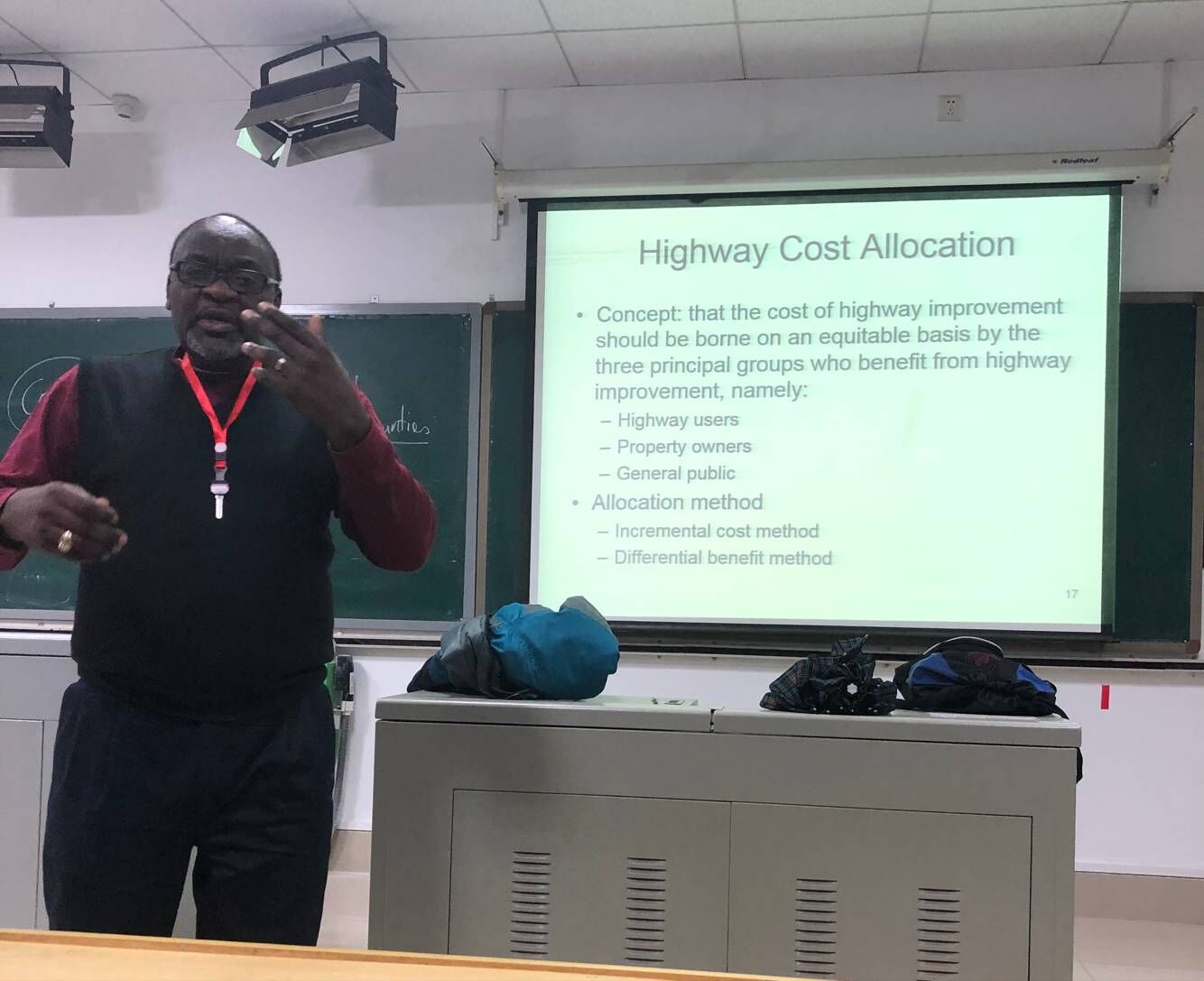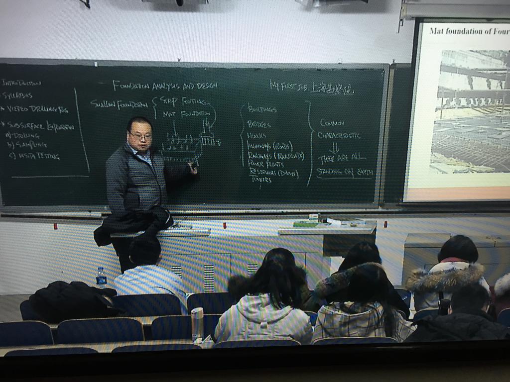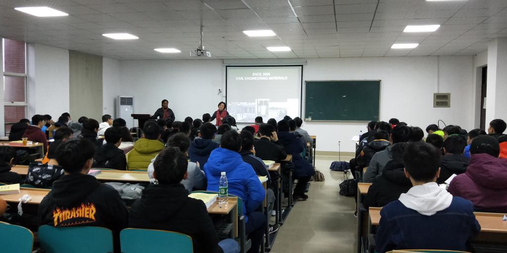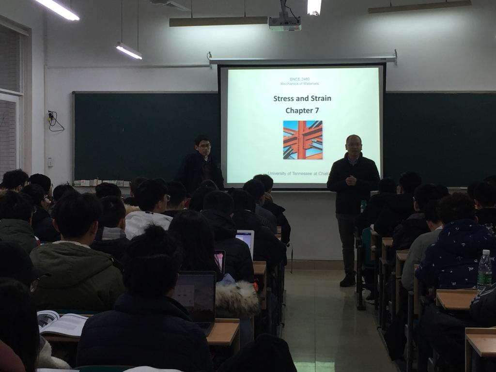 本次引进的6门课程为Foundation Analysis and Design、Transporataion II(2015级),Civil Engineering Materials、Design of Concrete Structures(2016级),Mechanics of Mateials、Dynamics(2017级),分别由美国田纳西大学诺克斯维尔分校的黄宝山教授,美国田纳西大学查塔努加分校的Fomunung Ignatius教授、Onyango Mbakisya副教授、吴卫东博士、Owino Joseph教授承担,并由伟德国际学院陈瑜,土木工程学院任宜春、潘军、曾明华、尹平保以及交通运输工程学院刘喜敏等6位老师担任引进课程助教工作。中外任课教师均表现出很强的敬业精神,克服了时差和恶劣天气的影响,精神抖擞提前到教室上课。中外合作项目同学们也展现了良好精神面貌,上课认真听讲,积极参与课堂互动。
