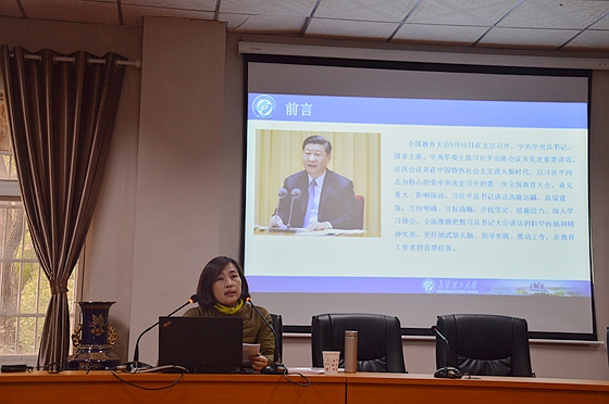 12月12日下午,校党委委员、党委宣传部部长方琼在金盆岭校区2教201宣讲全国教育大会精神。宣讲会由城南学院党委书记黄自力主持,城南学院和建筑学院全体教职工参加。