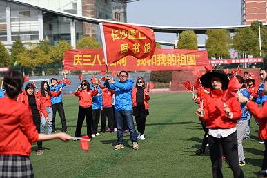 3月12日,图书馆80名教职工在云塘体育场开展庆三八“我和我的祖国”快闪活动,用歌声庆祝节日,用歌声倾诉对祖国的热爱。