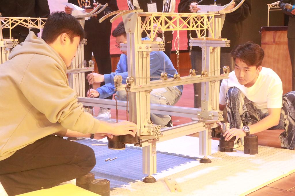 决赛经过2个小时的激烈角逐,来自建筑2102班的葛静凯组以91.1克的模型质量和40千克的加载质量夺得桂冠,赢得了现场的一片喝彩和掌声。