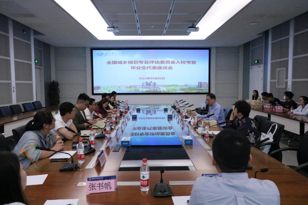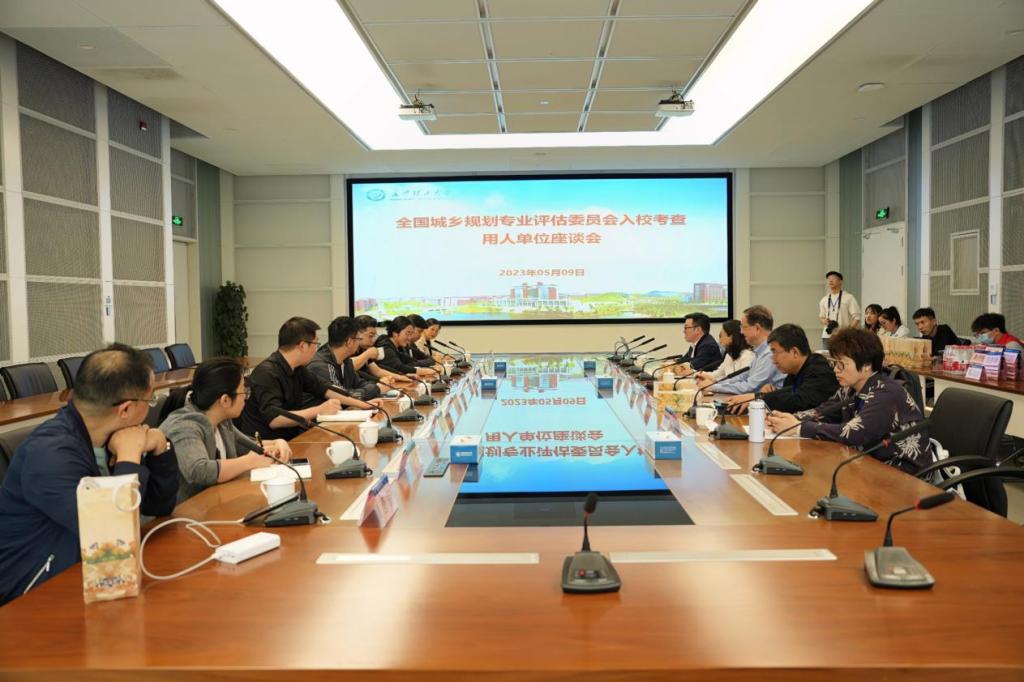 5月9日下午,袁锦富教授带领评估专家组继续考查城乡规划专业建设相关工作。在建筑学院相关负责人陪同下,专家组观摩了《专业导论》教学讲座,分组召开了用人单位代表座谈会和毕业生代表座谈会。