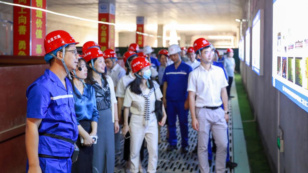 在公司项目负责人的解说下,教师们深入施工现场参观了公司长沙地铁2号线西延线项目与项目部文化建设,在电务城通公司考察了公司文化园、展览馆,并听取了中铁五局集团有限公司发展历史、企业文化的相关介绍。