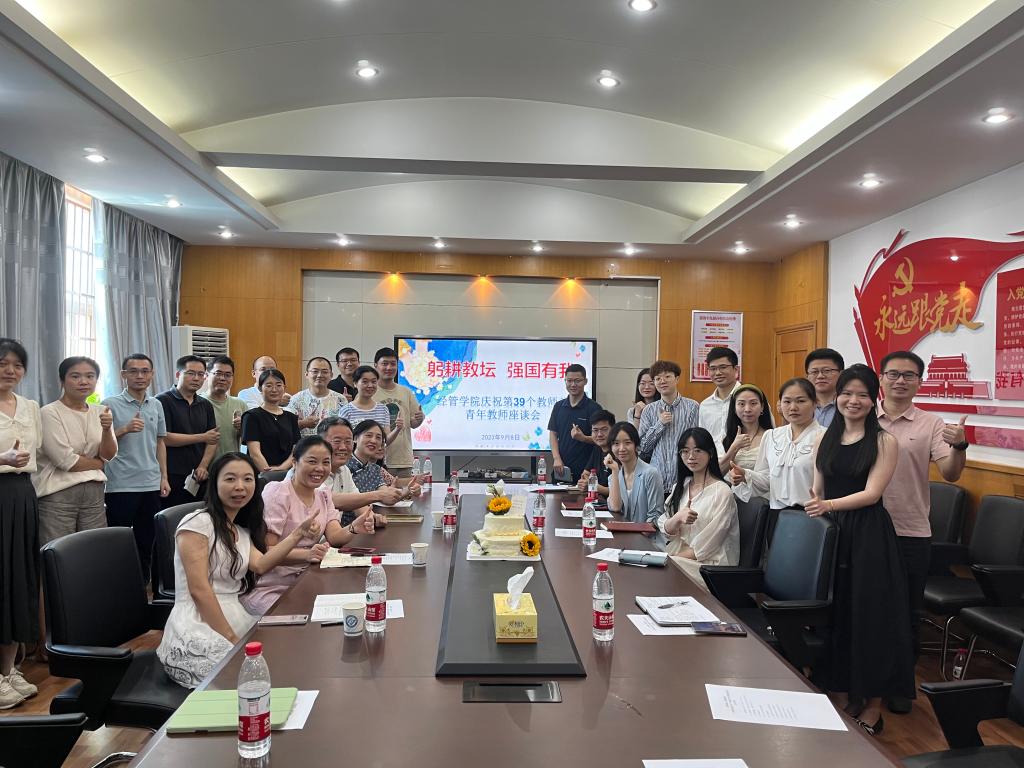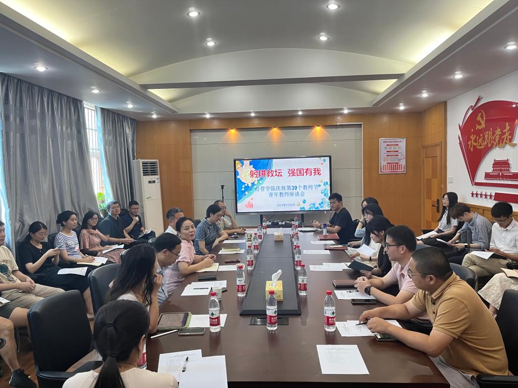 9月8日,在第39个教师节到来之际,经管学院在金盆岭校区办公大楼307会议室召开“躬耕教坛,强国有我”庆祝第39个教师节青年教师座谈会,聆听青年教师声音,助力青年教师发展。叶泽教授、李祝平教授、阳立高教授应邀到会并给青年教师提出指导意见和建议,青年教师代表昝傲博士应邀分享国自科项目申报经验。会议由院党委书记丁丹主持,学院近两年新入职的30余位青年教师参加会议。