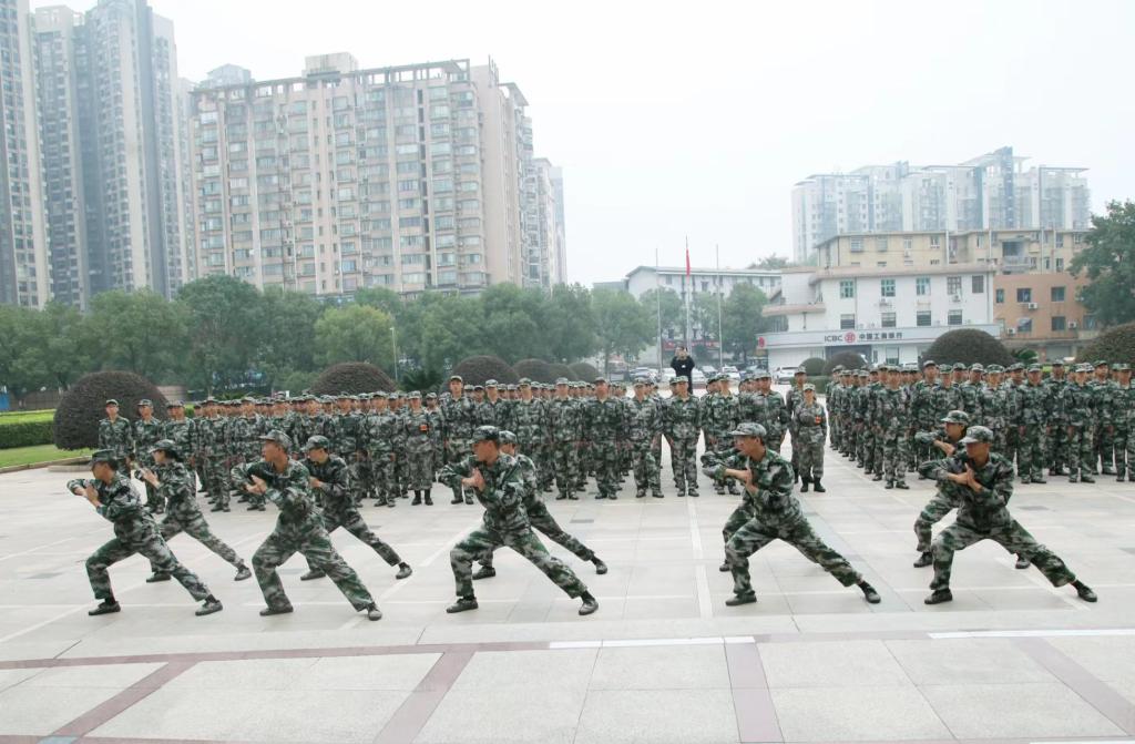 “强国有我!请党放心!”现场口号嘹亮,整齐划一,方队军姿挺拔、斗志昂扬,参训学生精神饱满,以最佳的姿态接受学院领导的检阅。“匕首操”、“刺杀操”、“擒敌拳”,一招一式气势磅礴,大开大合间尽显强军之风与血性。院领导对军训教官的辛劳付出给予高度赞扬,对新生的训练成果和精神风貌给予充分肯定。