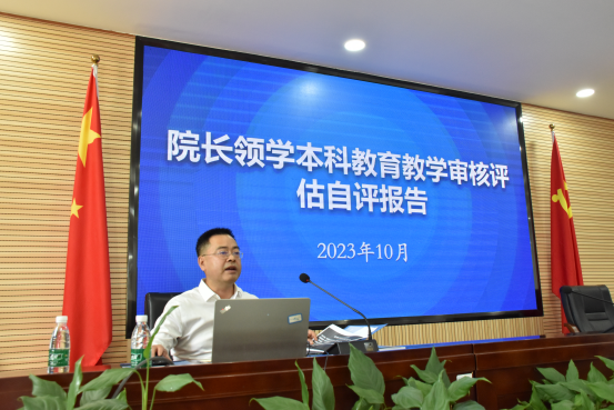 院长陈荐领学学校本科教育教学审核评估自评报告,引导老师们从学校办学方向与本科地位、培养过程、教学资源与利用、教师队伍、学生发展、质量保障、教学成效等方面进行重点学习。