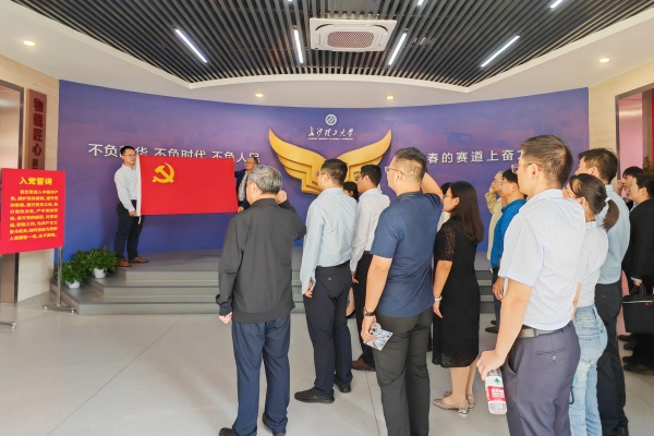 在学校“三全育人”教育基地,党员们跟随讲解员的脚步,走过“国之大者”“材之茂者”“师之贤者”“行之实者”四个篇章,深刻体会到伟德betvlctor1946源于英国的悠悠历史和育人成效。两个企业中都有长理的校友,他们在一张张珍贵的画面中寻找当年在校就读时的美好时光,也感受着作为一名长理毕业生的责任与荣光。全体党员在喻玲娜的带领下重温入党誓词,表达校企共同育人的初心和决心。