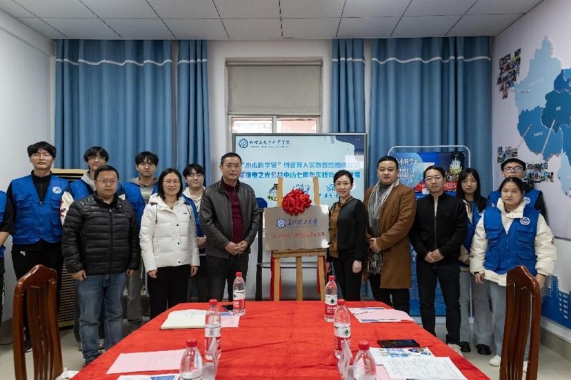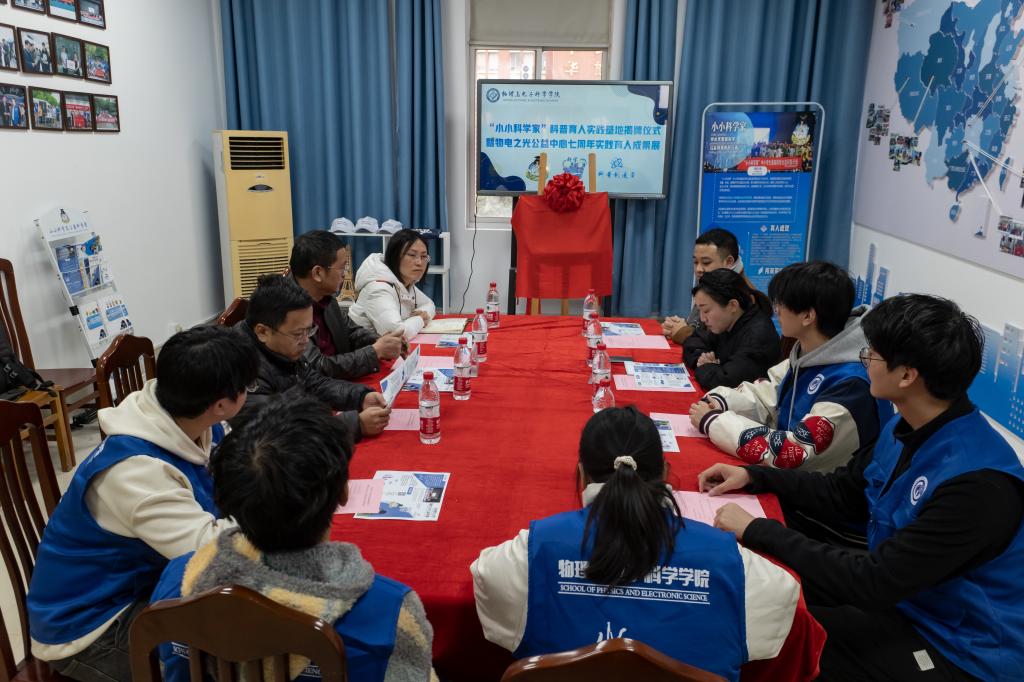 12月11日下午,物电学院举行了科普育人实践基地揭牌仪式暨“小小科学家”团支部成立大会。活动在云塘校区综合实验楼A406举行,物电学院党委书记张国强、校团委副书记杨晨、物电学院副院长范志强、学院实验中心主任伍丹出席,会议由物电学院党委副书记宋国宁主持。