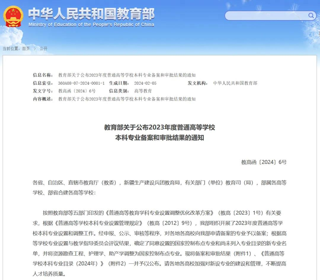 近日,教育部公布了《教育部关于公布2023年度普通高等学校本科专业备案和审批结果的通知》(教高函〔2024〕6号),计通学院新增网络空间安全本科专业。