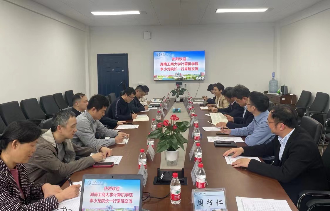 交流会上,张锦首先代表学院对李小龙院长一行的到来表示热烈欢迎,随后对学院总体情况进行了介绍。李小龙介绍了湖南工商大学计算机学院的办学规模、课程特色、师资队伍等方面的情况。蔡烁介绍了学院在本科人才培养与专业建设方面的基本情况。刘朝辉分享了对于专业未来发展趋势、教师队伍工程化建设等内容的思考。随后双方就程序设计竞赛、CCF认证、就业等方面的内容进行了热烈的讨论和深入的探讨。