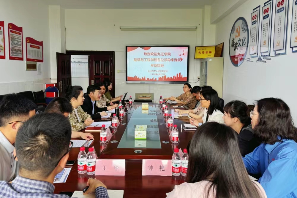 李家春对九江学院建筑工程与规划学院一行人员来访表示热烈的欢迎,并介绍了建筑学院发展历史沿革、师资队伍、人才培养和学科建设等方面的基本情况。周晨详细介绍了教学目标、课程设置、教学改革以及教学竞赛等相关教学工作情况。吴荻子重点分享了科研申报、职称评定以及硕士点建设情况。易宇、贺鹏和曹盼分别介绍了建筑学、城乡规划和风景园林专业建设和发展情况。