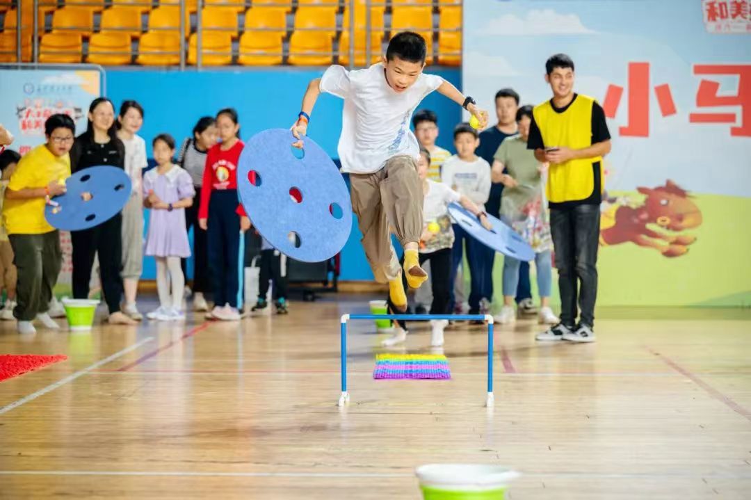 孩子们脸上洋溢着灿烂的笑容,在欢声笑语中与爸爸妈妈手拉手走进长理校园。亲子活动共设置障碍穿越、动感五环、四平八稳、小马快跑等五大亲子项目,有淘气城堡、超级零食机、坑爹过山车、脑力迷宫、挖呀挖呀挖等五大体验游乐项目。每个游戏都巧妙融入了跑、跳、钻、爬等运动技能,活动中,孩子们个个生龙活虎,勇敢挑战,和家长们一起奋勇争先,向着终点前进,孩子们可爱有趣的奔跑模样,引得现场笑声不断,亲子关系火速加温。场上加油声、呐喊声此起彼伏,整个体育馆变成了欢乐的海洋、亲子的乐园。在互动环节,为孩子们准备了丰富的奖品。