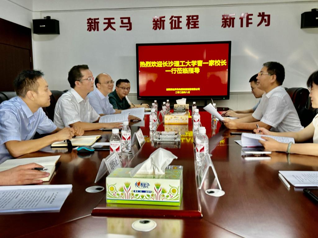 为深化校企双方在科技创新、人才培养、成果转化和学生实践等方面的合作,8月30日,校长曹一家带队赴益阳欣达天马电器设备制造有限公司进行走访调研。电气学院副院长陈春、副院长王媛媛、青年教师王炜宇陪同调研。
