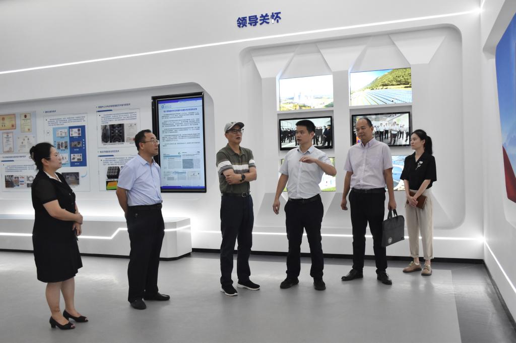 朱月祥首先来到新能源2号大楼一楼的“源网荷储综合能源系统”实验室,李传常详细讲解位于新疆吐鲁番“湘吐热经济产业园区”首个示范引导项目:光热装配式能源岛,通过大屏幕,学校实现了跨越近3800公里的远程管理、互动。随后,在田红、贾传坤、彭卓寅的讲解下,朱月祥依次参观了“碳基能源高效清洁利用实验室”“能源装备金属增材制造实验室”等。接着,朱月祥参观新能源大楼顶楼的源网荷储教学示范基地,包括太阳能光热集热系统等,并详细了解了楼顶设备的工作原理及其运行情况。
