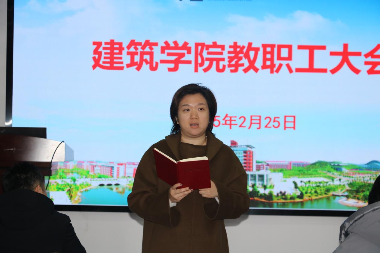2月25日,建筑学院在金盆岭校区16教314会议室召开了新学期全体教职工大会,院党委书记熊鹰主持会议。此次大会聚焦学院发展规划、学科建设与改革、教学科研任务、学生工作重点等关键议题,为学院在新的一年发展明确方向,全院教职工积极参与,共商学院发展大计。