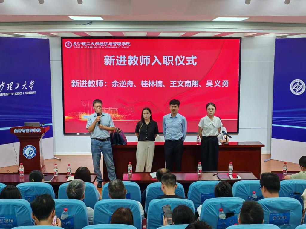 在新进教师入职仪式上,院长彭新宇为今年以来新入职的四位教师送上入职大礼包。新入职教师吴义勇、余逆舟、王文南翔、桂林楠依次进行自我介绍,表达了对加入经管大家庭的喜悦和对未来工作的期待。