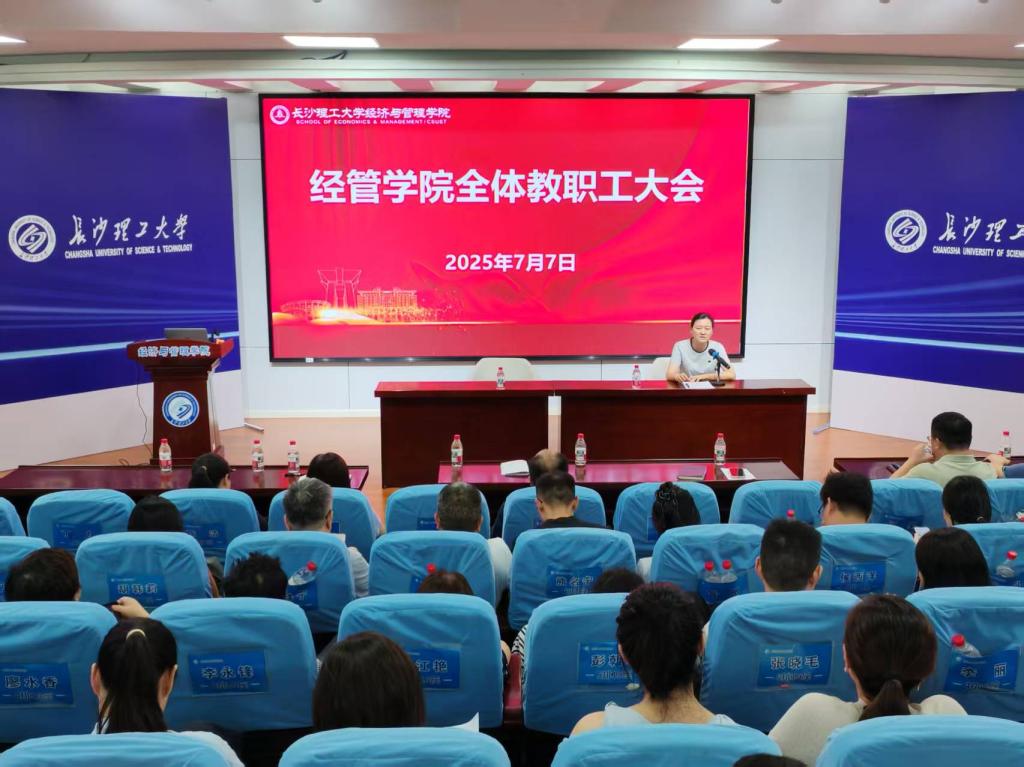 7月7日下午,经管学院在金盆岭校区12教200学术报告厅召开全体教职工大会,回顾上半年学院各项工作进展,部署安排暑期阶段各项重点工作。学院党政领导班子成员、全体教职工参加会议。会议由院党委书记马丽主持。