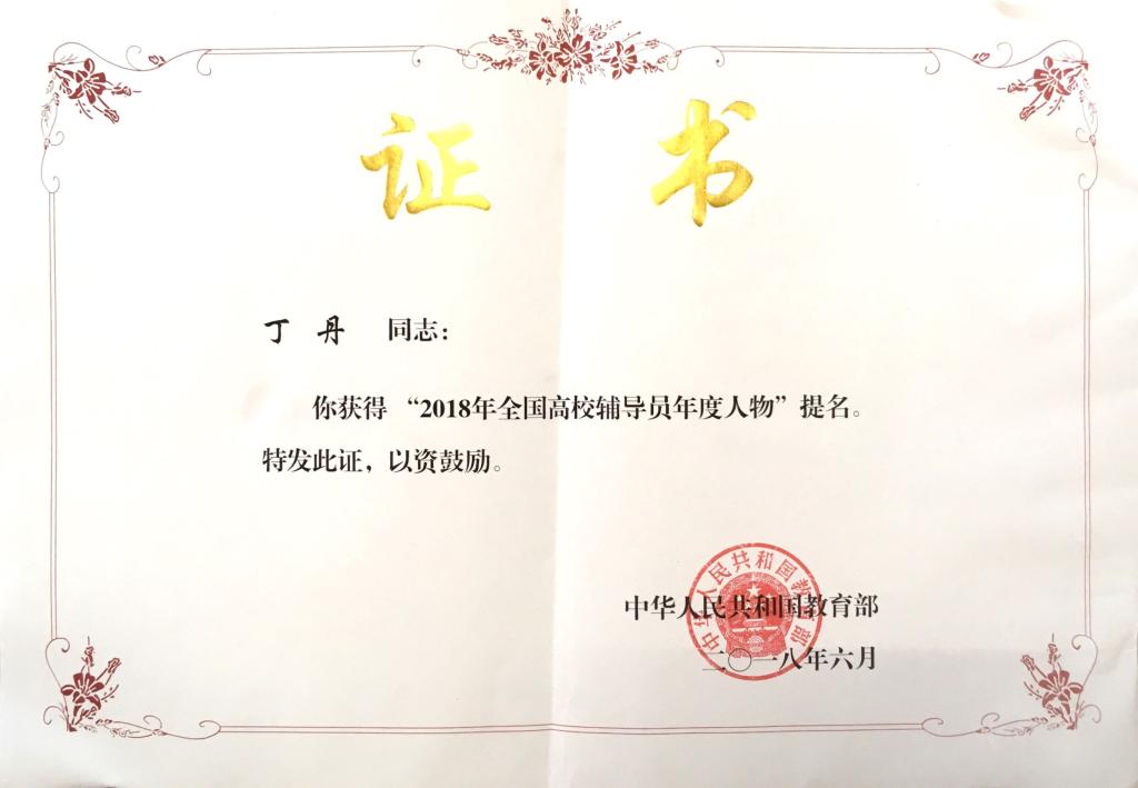 伟德辅导员丁丹荣获“全国第十届高校辅导员年度人物提名奖”