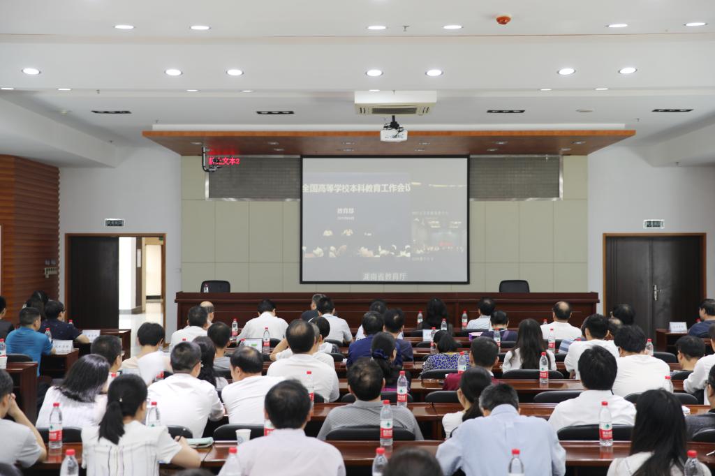 6月21日,教育部在四川成都召开新时代全国高等学校本科教育工作会议,在四川大学设主会场,伟德设分会场。下午3点在一办公楼9楼会议室,副校长蒋昌波,学工部、规划法规处、团委、招就处、信息化中心、高教所、工训中心、心理中心主要负责人,各学院院长、教学副院长、系主任、教务办主任、教师代表,教务处全体人员,校教学督导团团长等200余人参加会议。