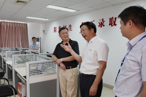 7月15日上午,校党委书记付宏渊在副校长谈传生及相关职能部门负责人的陪同下,来到本科招生录取工作现场,检查指导招生录取工作,并看望慰问招生录取工作人员。