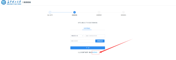 统一身份认证平台登录界面点击忘记密码,按照提示依次操作,具体操作步骤如下所示。