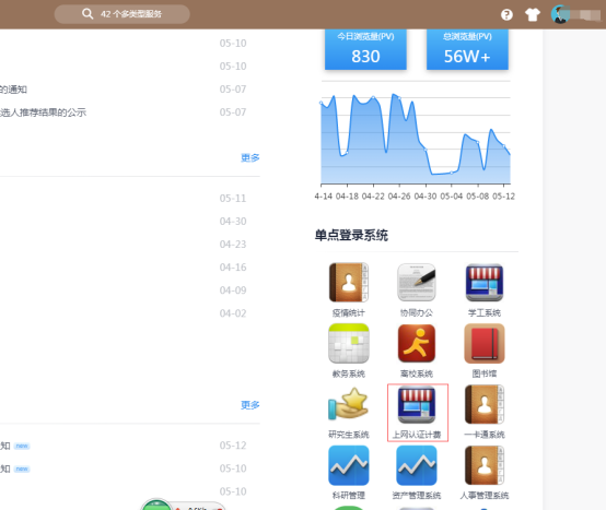 (2) 进入公众号主页点击“自助服务”,选择“注册上网账号”,跳转进入个人统一身份认证门户网站(1.统一身份认证账号密码找回;2.若浏览器不兼容请选择“仍要访问”;)。