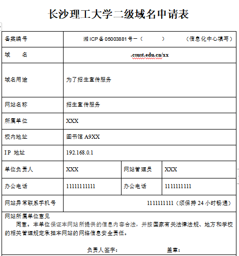 (1)此表只用于伟德betvlctor1946源于英国.csust.edu.cn下的二级网站域名申请;