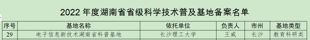 近日,湖南省科学技术厅、湖南省科学技术协会发布了2022年度湖南省省级科学技术普及基地备案及培育名单,由信息化中心牵头申报的“电子信息新技术科普基地”成功获批“湖南省科普基地”立项。
