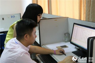 (湖南本科一批录取结果出炉后,工作人员田上将其交给招生教育处副处长丁力审核