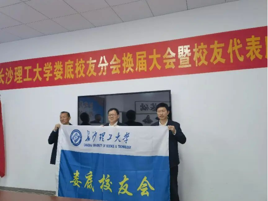 刘建民向娄底校友会进行了授旗、授牌。