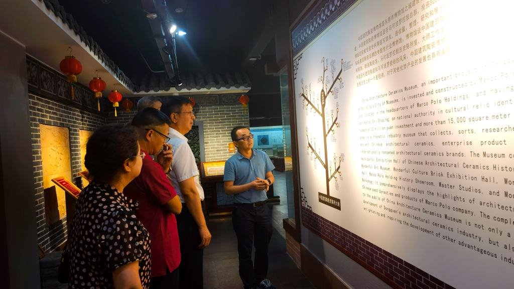 会后,在马可波罗控股集团负责人的陪同下,付宏渊参观了唯美中国建筑陶瓷博物馆。96级校友、东莞市唯美文化陶瓷公司总经理兼东莞市唯美陶瓷博物馆馆长朱红宇介绍了中国建筑陶瓷发展的历史、文化理念与创新思维,他讲述馆藏作品背后的故事、民俗文化特色,唯美现代陶瓷作品充分体现了企业文化创新和科技创新,展现了中国陶瓷艺术的前沿魅力,充分体现了我国的文化自信。