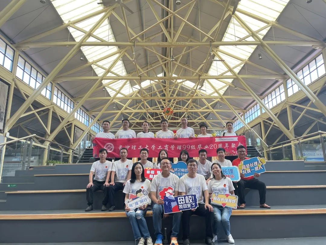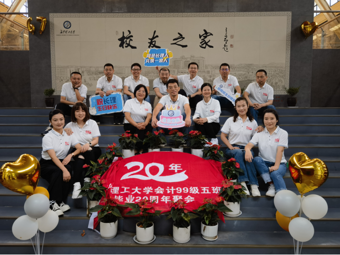 工商管理99-1班毕业20周年聚会合影留念,校友们纷纷为母校送上祝福。