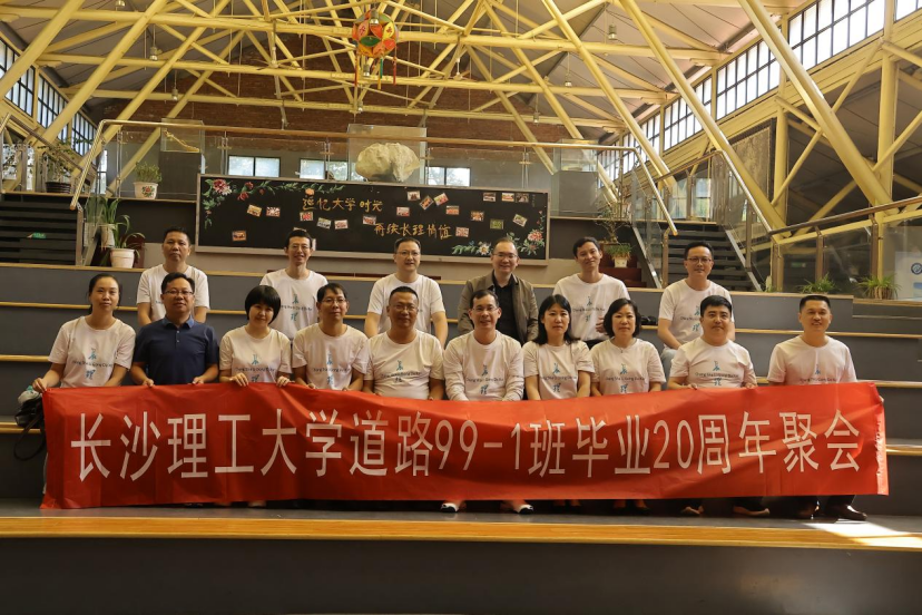 土木99级8班校友身着长理文化衫回访母校,于14教206举行班会。“二十年,一代新人换旧人。曾经熟悉的地方又换了新颜,老校区一派朝气蓬勃的景象让人欣喜不已。熟悉的老师和教室、当年绿色长廊的回忆和校友之家独特的气息都让人有一种回家的感觉!谢谢母校的栽培,我们会经常来看您的。”校友林鹏触景生情,陷入了回忆之中。
