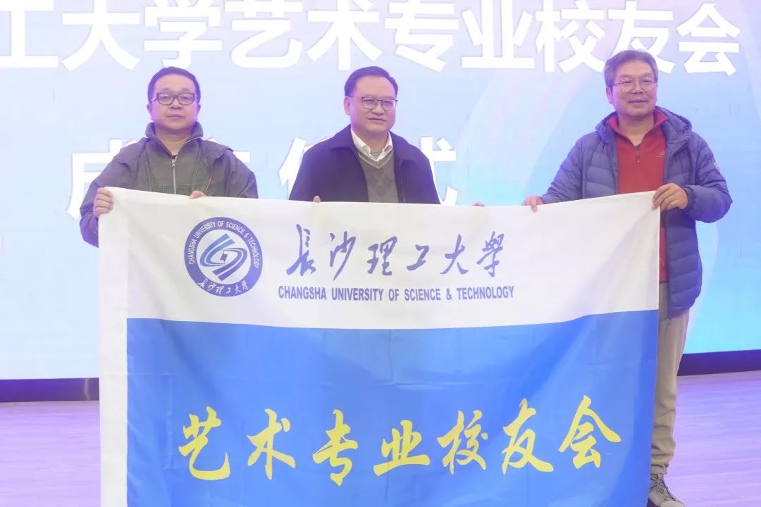 同时,刘朝晖对艺术专业校友会授会旗,会长何辉、秘书长桂赛接旗。