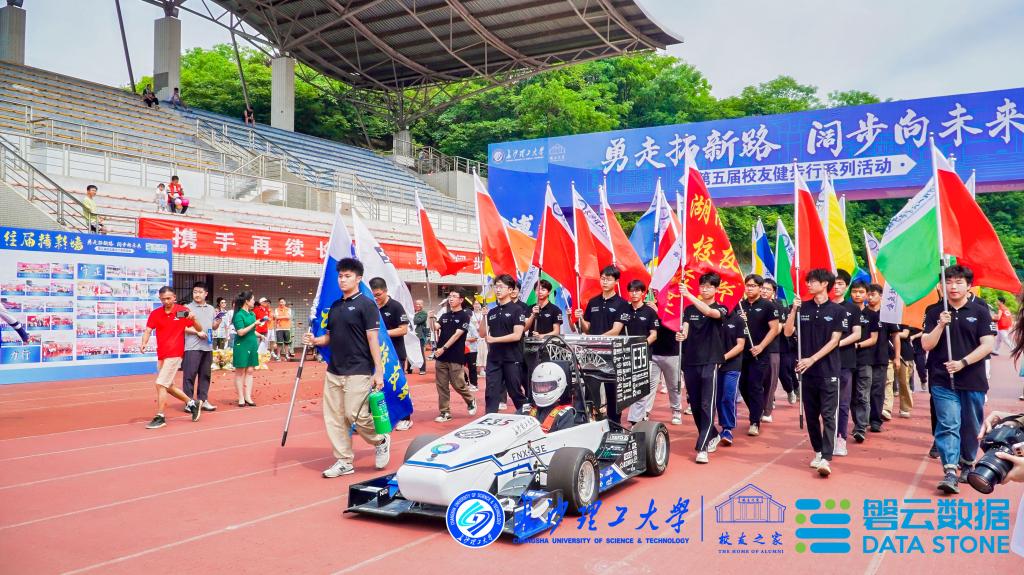 学校教职工声乐协会、舞蹈协会以及校社团联合会学生们现场表演了活力四射的歌舞。随后,健步行活动正式拉开帷幕。汽机学院方程式赛车队、长沙校友会彩旗方阵等27个校友代表队、23个师生团队依次入场,精神抖擞阔步前行。校友们重温校园时光,与师生们边游览校园边交流畅谈。交通、电气学院还组织校友实地参观走访了三全育人基地、学院全国重点实验室等多处校园“新地标”。此次活动还设置了骑行比赛、篮球比赛、乒乓球比赛、羽毛球比赛和亲子游戏等丰富的互动项目,既倡导了健康运动的生活理念,又增进了校友与母校、与湖南的联系。