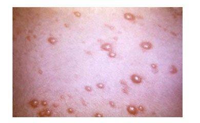 皮肤黏膜相继出现或同时存在斑疹、丘疹、疱疹和结痂等各类皮疹,水疱期痒痛感明显,患者在皮疹出现前可有发热、头痛、全身倦怠、恶心、呕吐、腹痛等前驱症状。