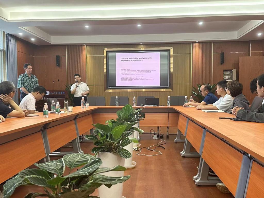 2023年10月1日上午,土木工程学院研究生博力学术论坛之大师引领系列讲座继续在云塘校区工科二号楼A304学术报告中心举行。德国汉诺威莱布尼茨大学(Leibniz Universität Hannover)风险与可靠性研究所所长Michael Beer教授受邀为师生们做了题为“Efficient reliability analysis with imprecise probabilities”的学术报告。报告会由土木工程学院张振浩教授主持,彭建新教授、夏桂云教授等教师以及40余位研究生参加了本次学术交流。