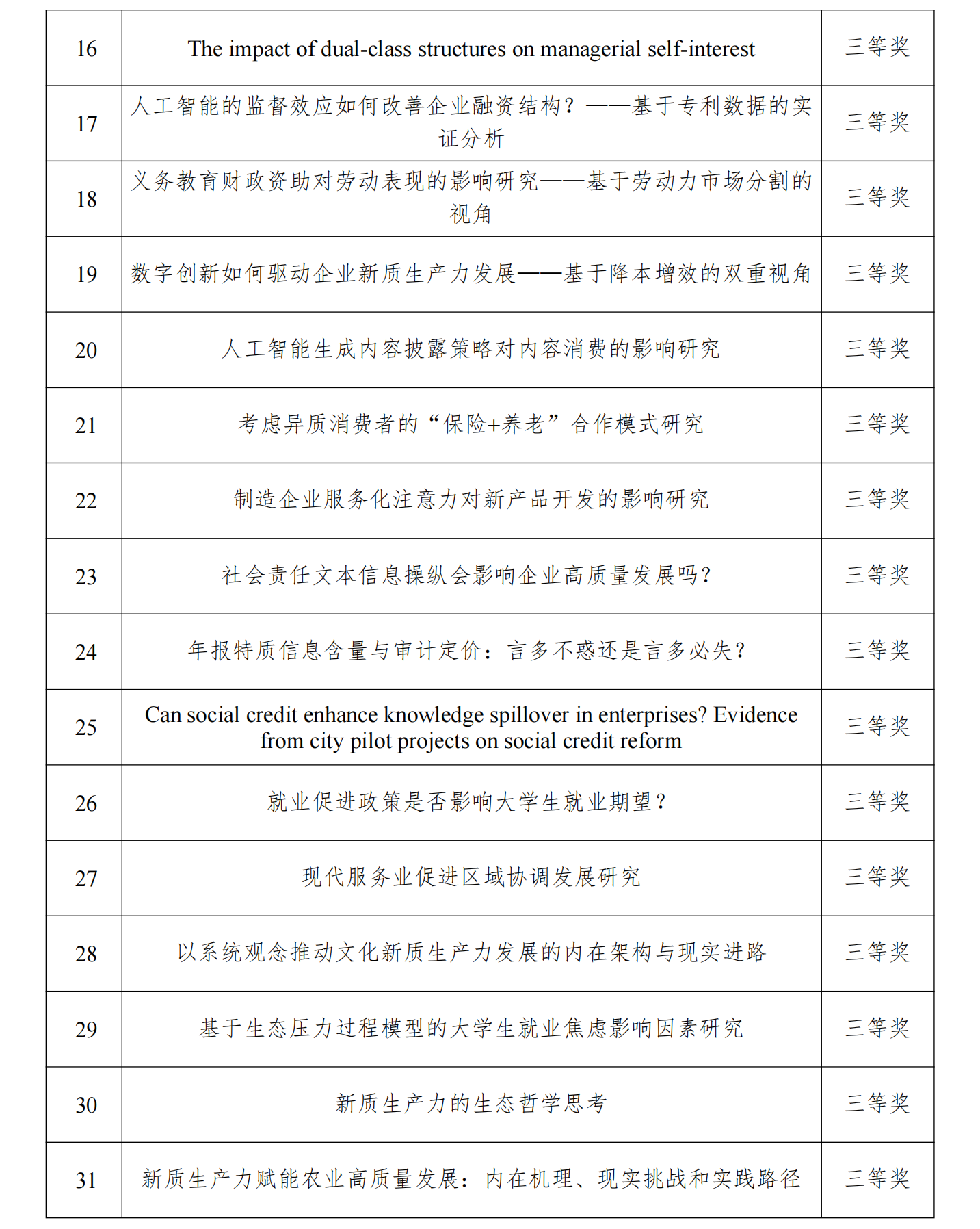 由伟德betvlctor1946源于英国研究生院主办,经济与管理学院承办的伟德betvlctor1946源于英国第二十届研究生博力学术论坛“新质生产力与创新发展”专题论坛征文活动共收到投稿论文53篇。经专家评审,共评出获奖论文31篇,其中一等奖5篇、二等奖8篇、三等奖18篇,现将拟获奖论文名单予以公示,公示期为2024年11月27日-12月2日,如有异议请联系经管学院周老师(0731-85222091)。