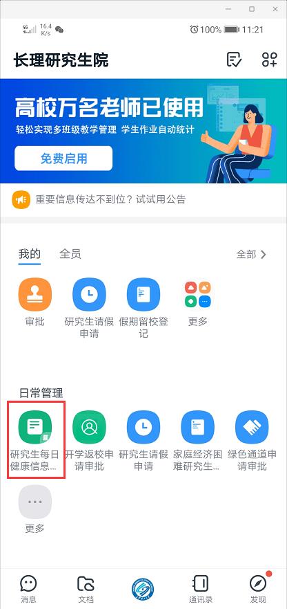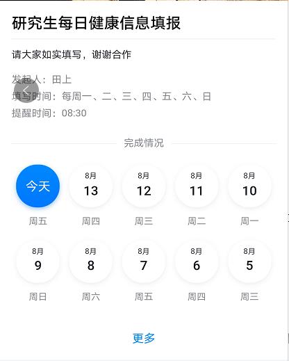1.完成网上远程报到后,研究生新生每日通过手机登录“钉钉”平台进行健康打卡。