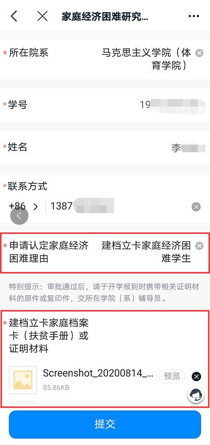1.家庭经济困难研究生可于8月20日至31日通过“钉钉”平台提交认定申请,并上传相关证明材料,经所在学院(系)辅导员审核后,在开学报到时提交证明材料原件或复印件。