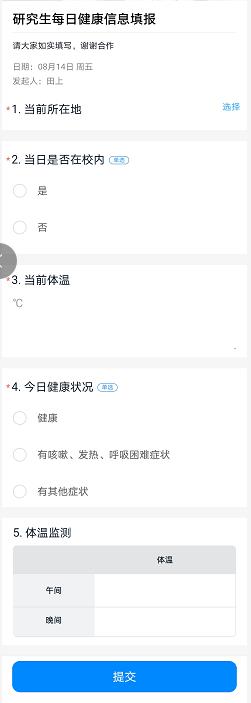 2.每日健康报告(网上报到后连续14天,在线申报)