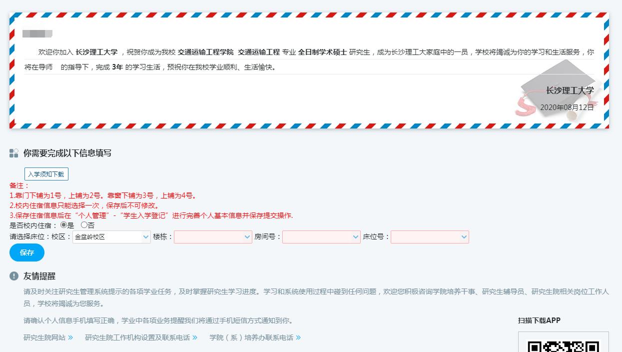4.8月31日24:00前研究生可选择宿舍,8月31日24:00后迎新模块关闭宿舍选择功能,未选宿舍的研究生系统将会自动分配宿舍。